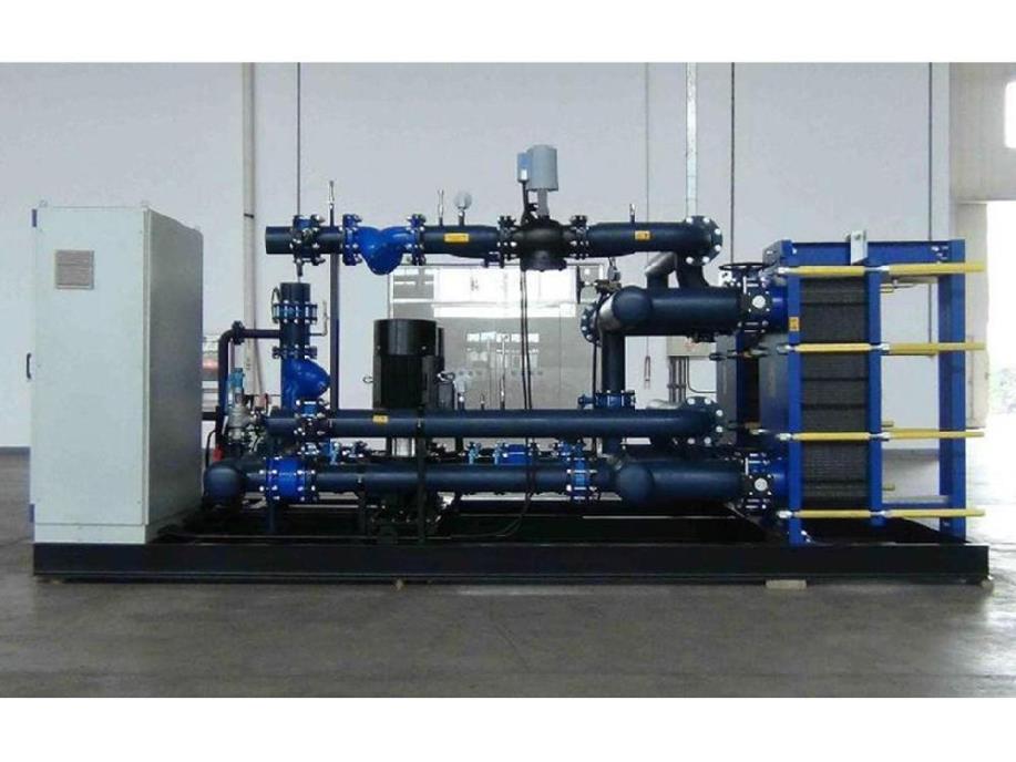 换热器机组是由换热器、温控阀组、疏水阀组(热媒为蒸汽时)循环泵、电控柜、底座、管路、阀门、仪表等组成,并可加装膨胀罐、水处理设备、水泵变频控制、温控阀、远程通讯控制等,从而构成一个完整的热交换站。换热器机组具有标准化、模块化的设计,配置齐全,安装方便、高效节能。换热器机组结构紧凑、运行可靠、操作简便直观等优点,是首选的高效节能产品。该产品适应于住宅、机关、厂矿、医院、宾馆、学校等场合的卫生热水。整体式换热器机组既可用于水—水交换,也可用于汽—水交换。